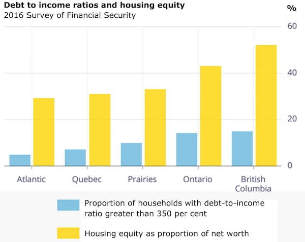 Fears over consumer debt may be easing somewhat, but it’s worth noting that a lot of Canadians could still find themselves in a lot of trouble in an economic shock, notably in British Columbia and Ontario.