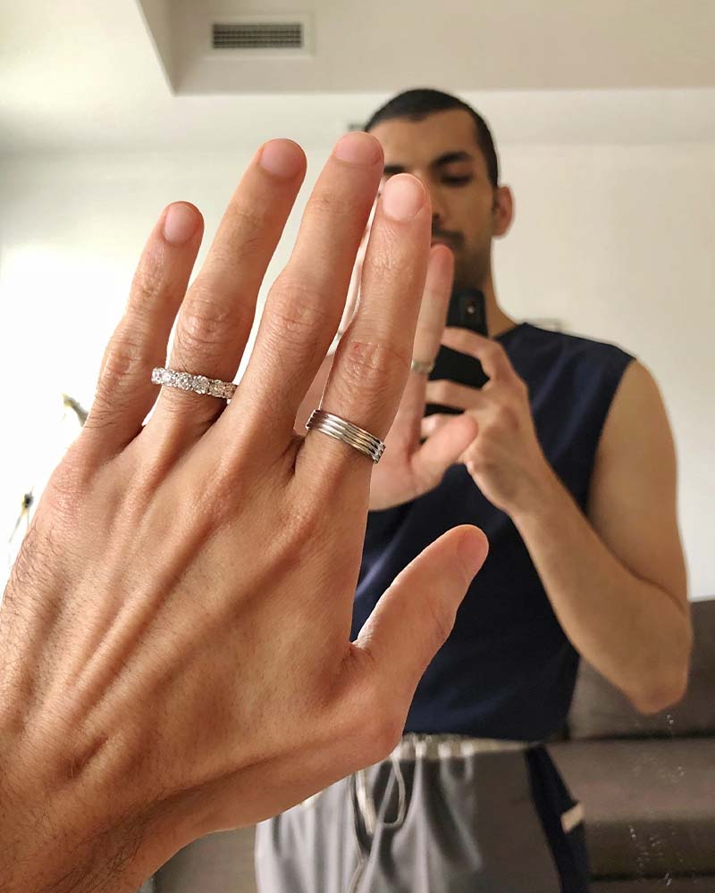 “Getting dressed when working from home is something that keeps my old routine in place. My outfit choices have gotten a lot more comfortable, i.e. no jeans and makeup allowed. Trousers and loose clothing is what I lean toward every day so that I am comfortable but not wearing sweatpants. Putting on a fresh outfit sets me on a path mentally for a productive day. My jewellery is always a main part of my outfit and never leaves me. It’s amazing how much more pulled together a slip dress and an oversized shirt look with some gold jewellery.”