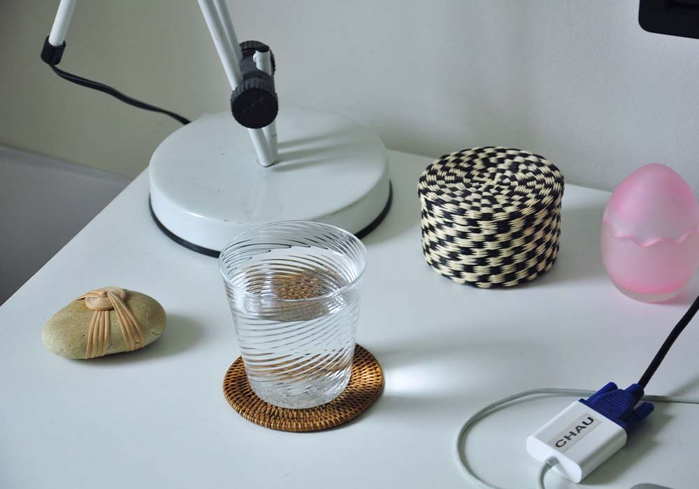 “My workspace is very simple. I don’t like to have many things around as I get easily distracted. Since the start of this crisis, I’ve been looking to further simplify and just be mindful of the moment. I do like to have a few picture books around for moments of escape and inspiration. My fiancé also introduced me to the pleasures of essential oils and diffusers, which I find highly relaxing. A tip to survive – try to get some fresh air every once in a while, maybe on a balcony. That first gasp of air brings optimism about what the future holds.”