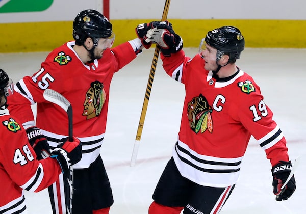 Chicago Blackhawks star Jonathan Toews, right, signed a US$10.5-million-a-year contract, just one factor that contributed to the Blackhawks’ challenges in staying under the team salary cap.Nam Y. Huh/The Associated Press