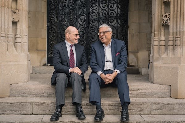 Business dean Len Waverman, left, and engineering dean Ishwar Puri have brought their faculties at McMaster University together to introduce a new business-infused minor in innovation for engineers and others.Kareem Baassiri,/McMaster University