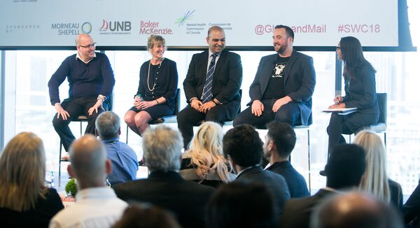 (From L to R) Nicolas Drapeau, Manager of Onboarding at Deluxe Payroll Sarah Liverance, Partner at Sklar Wilton & Associates Carl Jafrabad, Director of Total Rewards and HR Business Partner at Nestle Canada Dave Holmes, Director of Employee Engagement at Klick Inc. Paula Allen, Vice President of Research and Integrative Solutions at Morneau Shepell