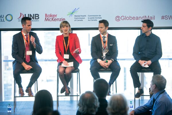 Christopher Burkett, a partner with Baker McKenzie, Jacqueline Luksha, a lawyer with Hicks Morley, Daniel Lublin, a partner with Whitten & Lublin and Sean Stanleigh, managing editor of The Globe and Mail’s Content Studio. They were part of the panel discussion on marijuana and anti-harassment policies at the Solving Workplace Challenges event at The Globe Centre in Toronto on March 20. Glenn Lowson for The Globe and Mail.