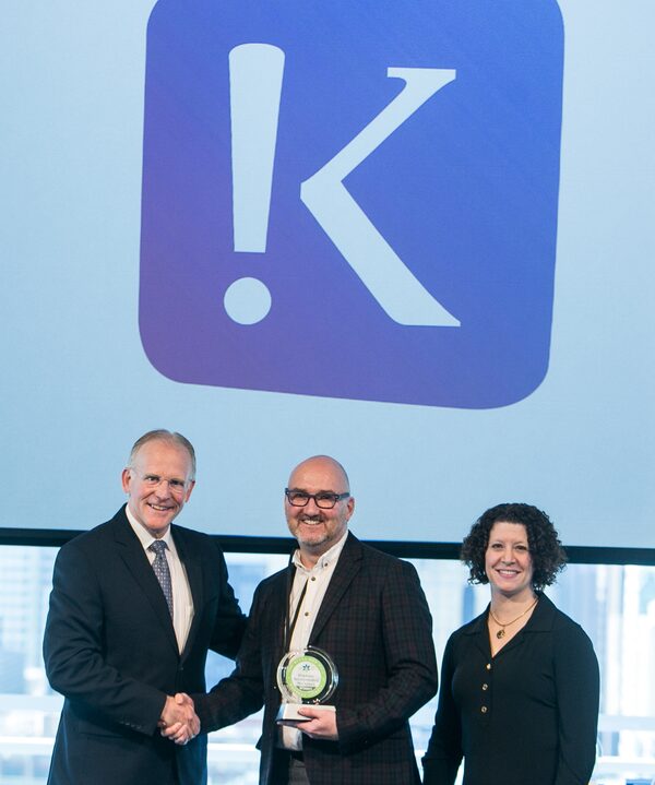 2018 Employee Recommended Workplace Awards ceremony at The Globe and Mail Centre. March 20, 2018. Randal Phillips, Executive Vice-President and Chief Client Officer, and Gillian Livingston from The Globe and Mail, present the Top Category award for Large Privately owned organization to Klick Inc.Glenn Lowson