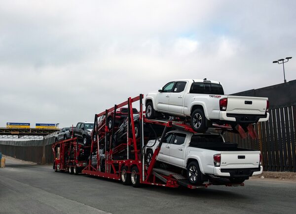 Trucks drive near Otay commercial Port of entry at the US/Mexico border in Tijuana, Baja California state, Mexico on Aug. 27, 2018.GUILLERMO ARIAS/Getty Images