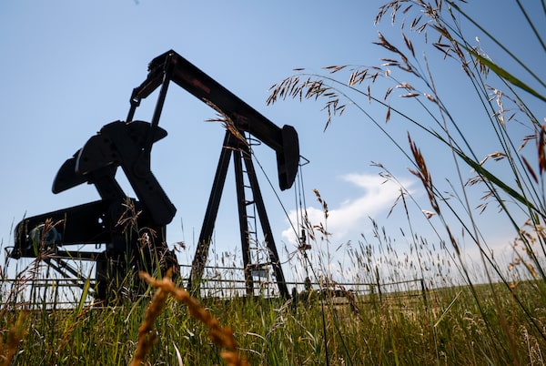 An oil pumpjack on a farm near Cremona, Alta., on July 29.Jeff McIntosh/The Canadian Press