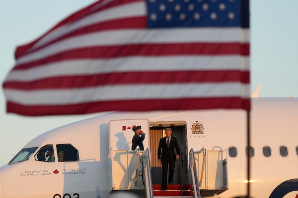 Prime Minister Mark Carney arrives at Joint Base Andrews, near Washington, on Monday. He has said the federal budget, set to be released on Nov. 4, is 'an austerity and investment budget at the same time.'Adrian Wyld/The Canadian Press