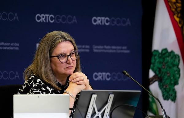 Nathalie Theberge, CRTC vice-chairperson of broadcasting, chairs a public hearing in Gatineau, Que., in September. The regulator has recently watered down its definition of a 'Canadian program.'Justin Tang/The Canadian Press