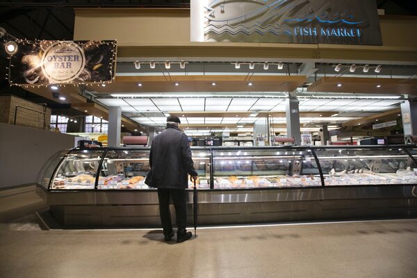 A shopper waits by the counter of a fish monger at Toronto's St. Lawrence Market. Over the past 12 months, salmon prices have increased 21 per cent amid a sharp drop in catches.Fred Lum/the Globe and Mail