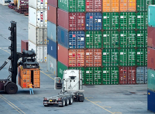 Shipping containers are stacked at the Port of Montreal, the largest port in Eastern Canada. In an effort to double Canada’s non-U.S. exports by 2035, the government is investing $5-billion in domestic trade corridors to ensure goods move more efficiently to and through Canadian ports.Christopher Katsarov/The Canadian Press