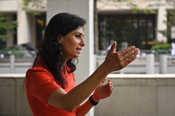 IMF chief economist Gita Gopinath speaks during an interview with AFP at the International Monetary Fund headquarters in Washington DC on October 12, 2021. - Rising energy prices are weighing on households but the recent spike is unlikely to fuel a 1970s-style oil crisis and should retreat early next year, IMF chief economist Gita Gopinath told AFP Tuesday. (Photo by PEDRO UGARTE / AFP) (Photo by PEDRO UGARTE/AFP via Getty Images)PEDRO UGARTE/Getty Images