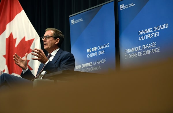 Governor of the Bank of Canada Tiff Macklem during a videoconference event with the Council on Foreign Relations at the Bank of Canada in Ottawa on Oct. 7.Justin Tang/The Canadian Press