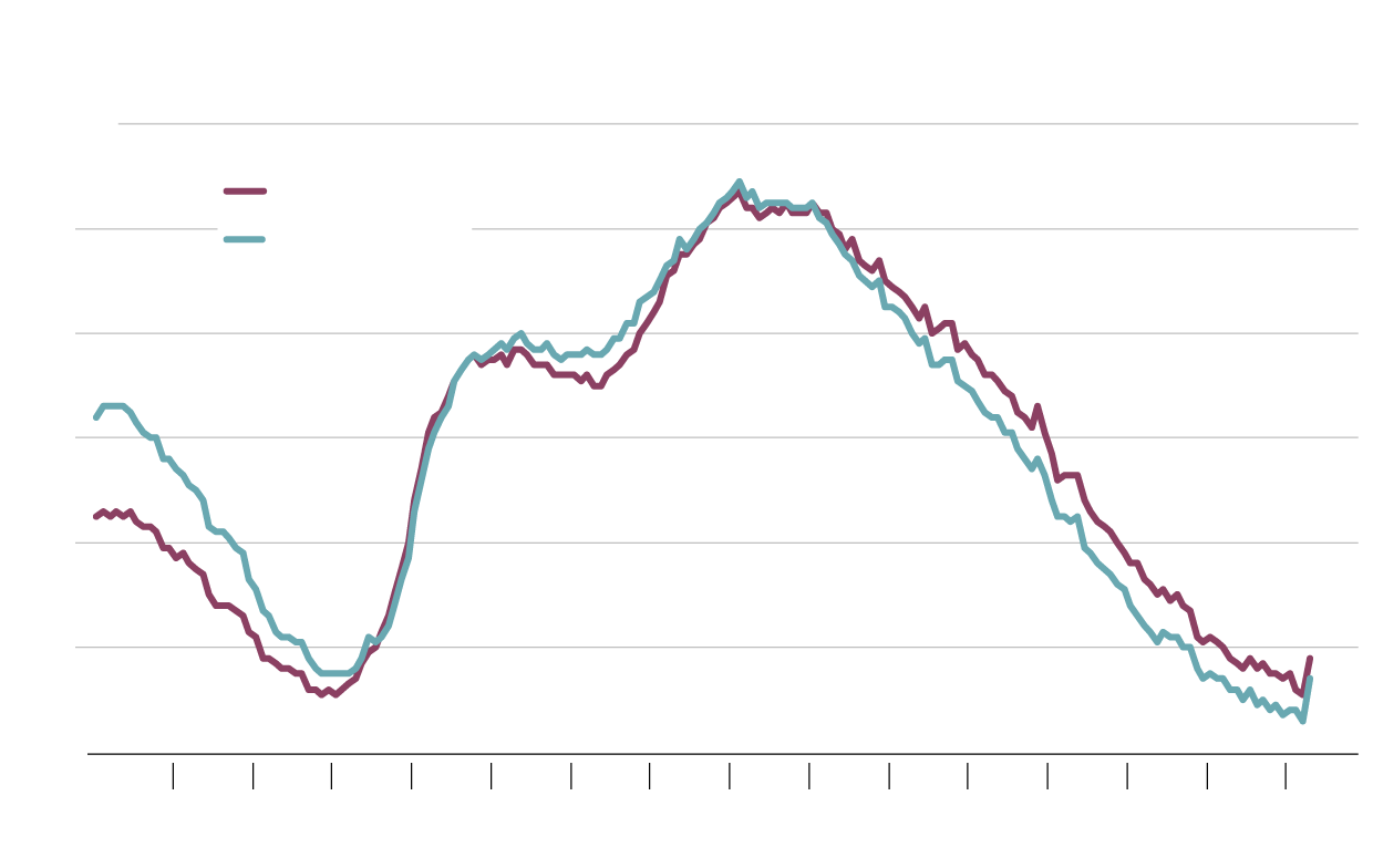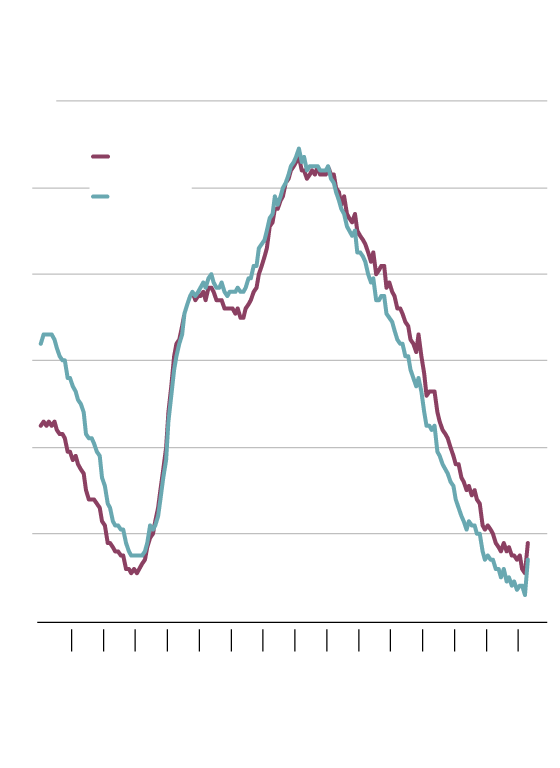 Seasonally adjusted, per cent