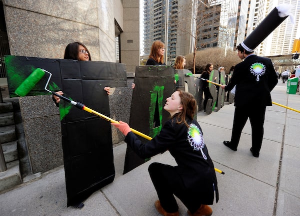 Greenpeace activists protest outside the BP Canadian offices in downtown Calgary, in April, 2010.Todd Korol/Reuters