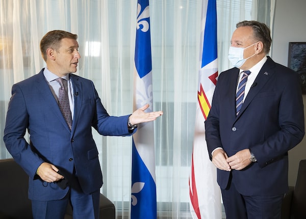 Former Newfoundland and Labrador Premier Andrew Furey holds his first meeting with Quebec Premier Francois Legault in Montreal in August, 2021.Graham Hughes/The Canadian Press