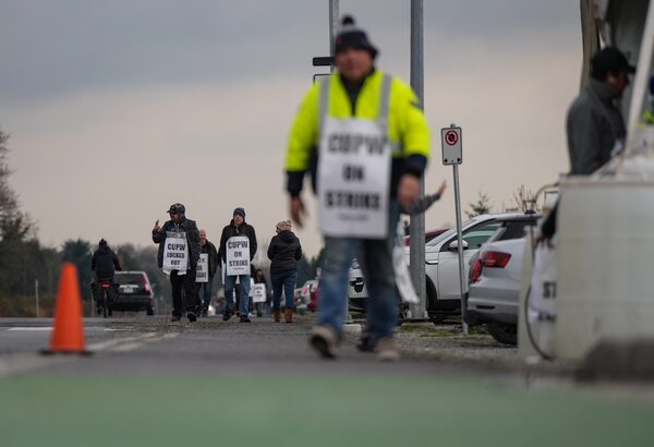 Members of the Canadian Union of Postal Workers picket outside the Canada Post Pacific Processing Centre, in Richmond, B.C., on Nov. 27. The federal government says it is not planning to intervene to resolve the labour dispute at Canada Post, that has around 55,000 workers on the picket line calling for a 'fair wage' and better working conditions.DARRYL DYCK/The Canadian Press