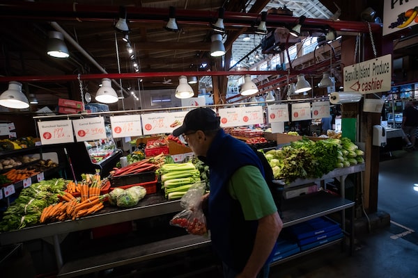 A person shops for produce at the Granville Island Market in Vancouver, on July 20.DARRYL DYCK/The Canadian Press