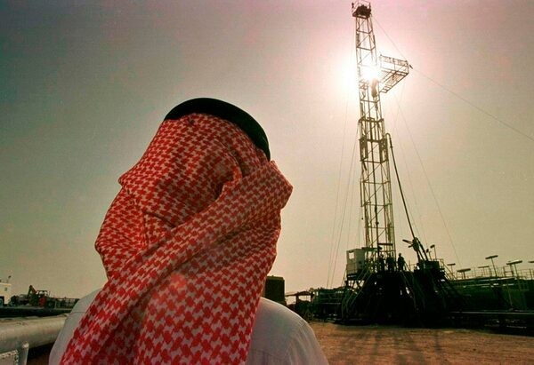 Khaled al-Otaiby, an official of the Saudi oil company Aramco, watches progress at a rig at the al-Howta oil field near Howta, Saudi Arabia, on Feb. 26, 1997.The Associated Press