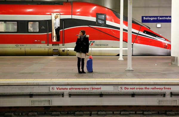 High-speed rail across Europe, not just Italy, is reshaping the transportation grid for the better. A Trenitalia Frecciarossa high-speed train is seen at the Bologna Central Station, in Bologna, Italy on Feb. 2, 2018.Alessandro Bianchi/Reuters