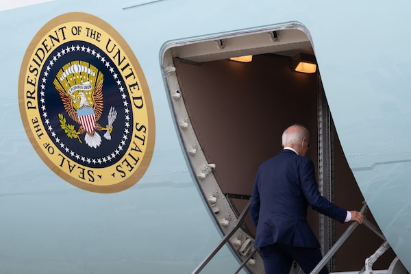 U.S. President Joe Biden boards Air Force One prior to departure from Galeao International Airport in Rio De Janeiro, Brazil, on Nov. 19, as he returns to Washington following the G20 Summit.SAUL LOEB/AFP/Getty Images