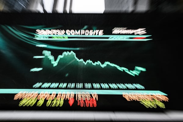 The electronic ticker display outside the Toronto Stock Exchange Tower.Christopher Katsarov/The Globe and Mail