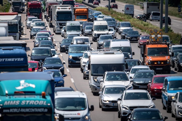 Cars on the A9 highway in Munich, southern Germany, as Pentecost holidays started on June 7, 2019.SINA SCHULDT/AFP/Getty Images