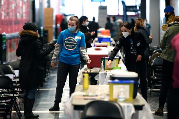 Volunteer medical staff deliver COVID-19 booster shots in Ottawa, on Dec. 20, 2021.Justin Tang/The Canadian Press