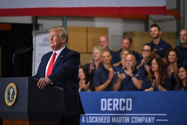 U.S. President Donald Trump speaks about the Canada-U.S.-Mexico Agreement, known as USMCA in the U.S., during a visit to the Derco Aerospace plant in Milwaukee in July, 2019. Mr. Trump appears to have no intention of renewing the agreement when it comes up for review in July.MANDEL NGAN/AFP/Getty Images