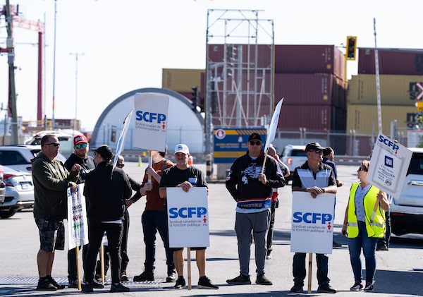 Port of Montreal longshore workers begin a three-day strike outside the Viau terminal in Montreal, Sept. 30. Dockworkers at the Port of Montreal are set to halt all overtime work this morning in a pressure tactic targeting their employers as contract talks continue.Christinne Muschi/The Canadian Press