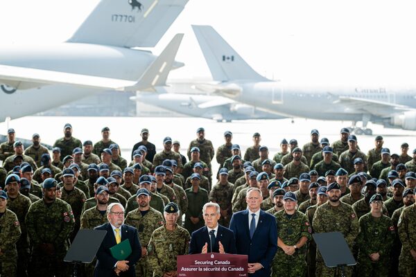 Mr. Carney holds a press conference at CFB 8 Wing Trenton in August after touring the facility. As Canada embarks on a defence spending increase not seen in generations, there is an opportunity for Canada to re-establish a burgeoning domestic industry.Spencer Colby/The Canadian Press