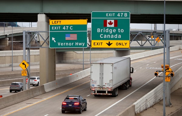 A commercial truck drives towards the Ambassador Bridge to Windsor, Ont. from Detroit, Mich., on March 3.Rebecca Cook/Reuters