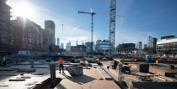 Workers at an Ellis Don construction site in Toronto. Higher interest rates are starting to slow interest-rate-sensitive sectors of the economy, such as construction and manufacturing.Fred Lum/The Globe and Mail