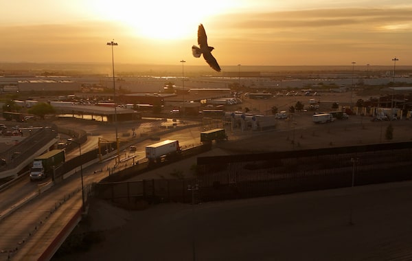 A drone view shows trucks crossing into the United States via the Zaragoza-Ysleta border bridge in Ciudad Juarez, Mexico, on April 2.Jose Luis Gonzalez/Reuters