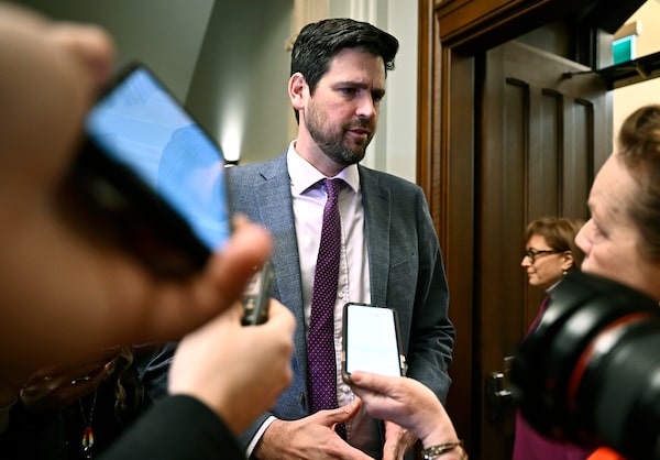 Immigration Minister Sean Fraser speaks to reporters before heading into a meeting of the Liberal caucus, on Parliament Hill in Ottawa on March 8.Justin Tang/The Canadian Press