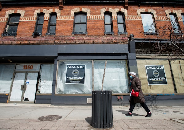 Space available on storefronts in downtown Toronto, on April 16, 2020.Nathan Denette/The Canadian Press