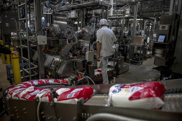 An employee works at Agropur's milk packaging plant in Montreal.Andrej Ivanov/The Globe and Mail