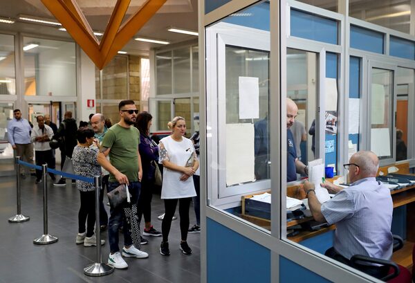 People queue in front of an information counter as they fill in forms at an Italian job centre in Scampia near Naples, Italy October 11, 2018. Picture taken October 11, 2018. REUTERS/Alessandro BianchiALESSANDRO BIANCHI