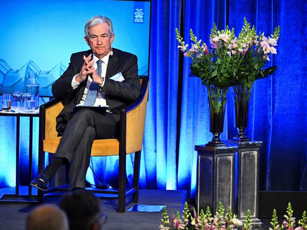 Chair of the Board of Governors of the Federal Reserve System Jerome H. Powell participates in a panel during a Central Bank Symposium at the Grand Hotel in Stockholm on Jan. 10.TT NEWS AGENCY/Reuters