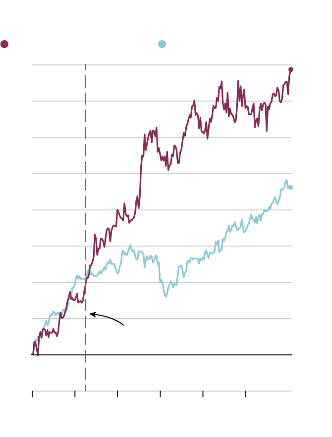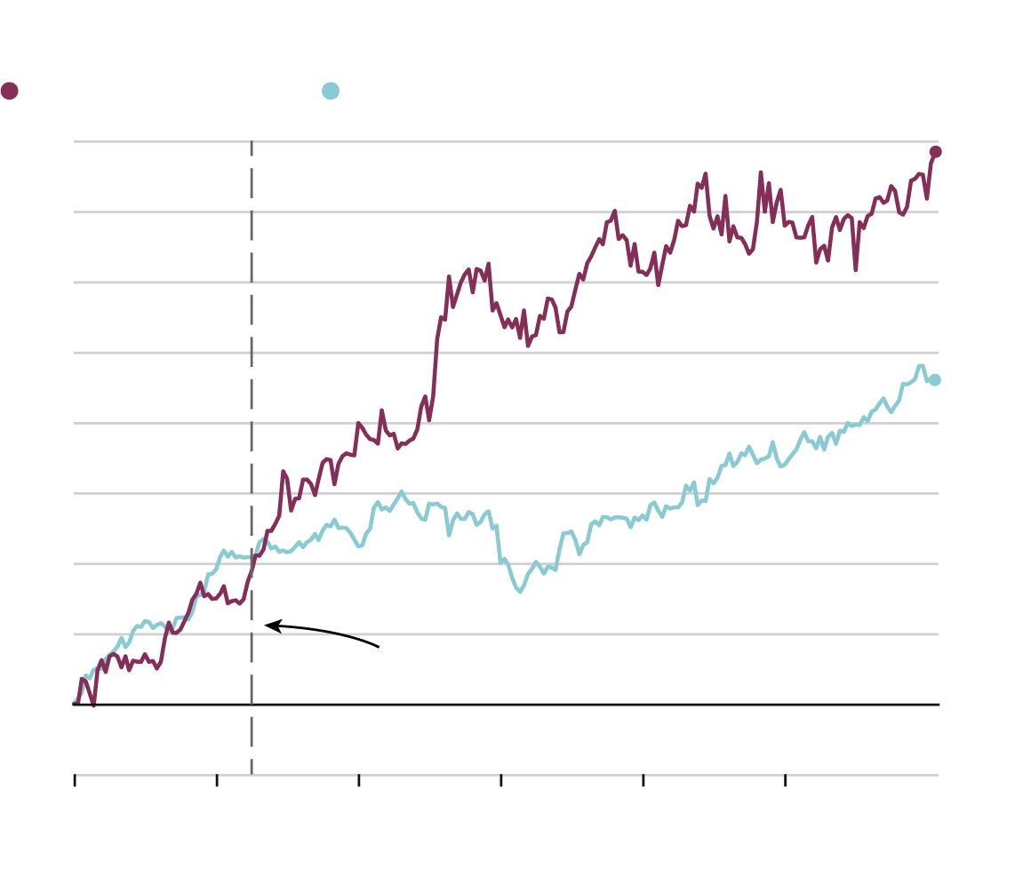 Percentage change since January, 2000