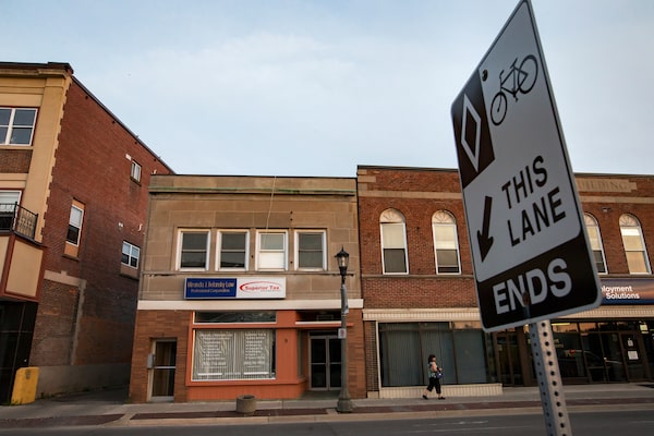 A woman walks on East Main Street in Welland, Ont. (Tara Walton/The Globe and Mail)Tara Walton/Globe and Mail