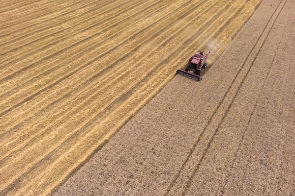 A wheat field at Wooodleigh Farms in Cavan, Ont., in 2023. Ontario, British Columbia and most of the Atlantic provinces currently have no restrictions on foreign ownership of farmland.Cole Burston/The Globe and Mail