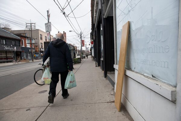 A pedestrian walks past closed shops on Queen Street West, in Toronto, on April 28 2020.Fred Lum/the Globe and Mail