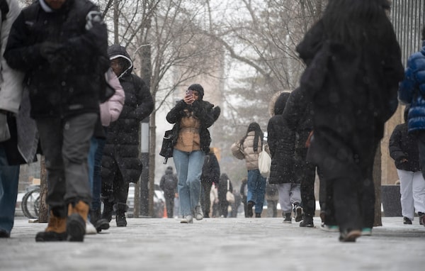 Students and pedestrians walk through Toronto Metropolitan University's downtown campus. Money mule recruitment targeting students happens on campuses, through social media and even on dating apps.Fred Lum/The Globe and Mail