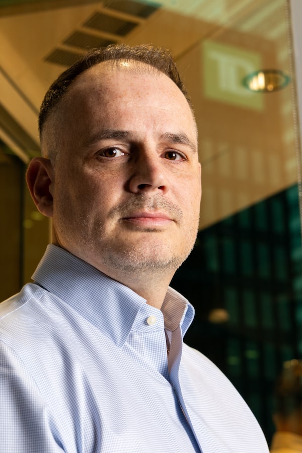 Mark Hines, head of product, fraud at Interac, says the financial services industry has been working with processes like predictive modelling to identify accounts that are at risk of pivoting to fraud.Alejandro Gomez Garcia/The Globe and Mail