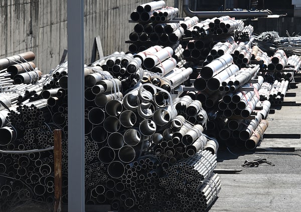 Steel products are seen outside a steel pipe manufacturing plant in South Korea on February 13, 2025.JUNG YEON-JE/AFP/Getty Images