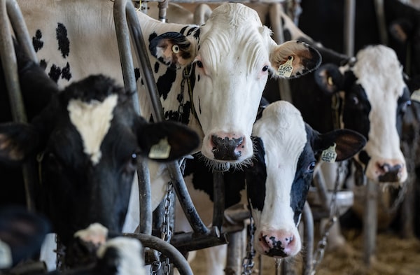 Cows in a dairy farm in Granby, Que. on Feb. 5. U.S. President Donald Trump has threatened to impose tariffs on Canadian dairy products.Christinne Muschi/The Canadian Press