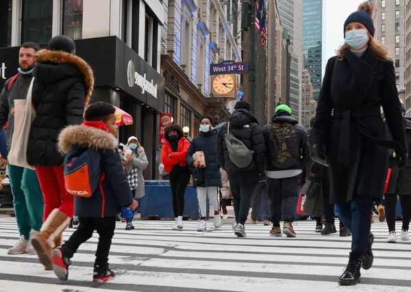 People walk through Herald Square in New York, on Jan. 8, 2021.ANGELA WEISS/AFP/Getty Images