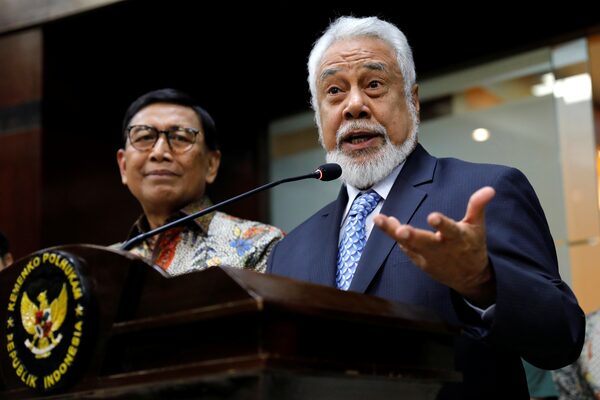 Xanana Gusmao speaks during a press conference in Jakarta, Indonesia, on July 22, 2019.WILLY KURNIAWAN/Reuters
