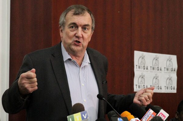Barrick Gold CEO Mark Bristow speaks at a press conference in Dar es Salaam, Tanzania, on Oct. 20, 2019.STRINGER/Reuters