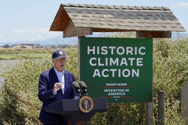 U.S. President Joe Biden speaks about his administration's actions to battle climate change and protect the environment during a visit to Lucy Evans Baylands Nature Interpretive Center and Preserve, in Palo Alto, Calif., on June 19, 2023.KEVIN LAMARQUE/Reuters